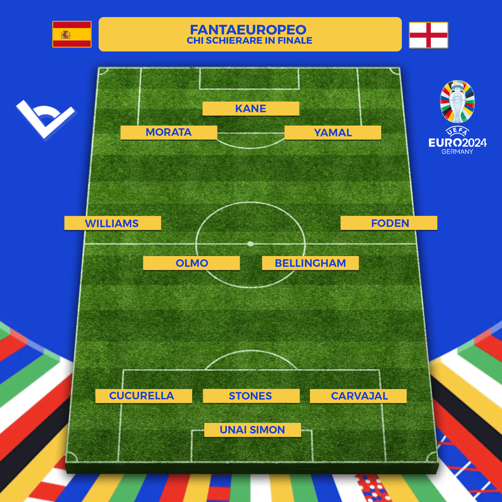 È stato un mese intenso anche al fantaeuropeo, che ci ha tenuto compagnia durante tutto il torneo a suon di bonus. Dopo quanto fatto nelle prime 6 giornate, in cui speriamo di avervi aiutato a ottenere buoni risultati con i nostri consigli, è il momento di fare un ultimo sforzo e scegliere la formazione da mandare in campo per la finale: di seguito trovate i migliori 11 da schierare e i 5 giocatori da evitare per la finale di Euro2024 al fantaeuropeo.