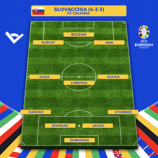 Formazione tipo Slovacchia (4-3-3): Dubravka; Gyomber, Vavro, Skriniar, Hancko; Kucka, Lobotka, Duda; Mak, Bozenik, Suslov. All. Calzona