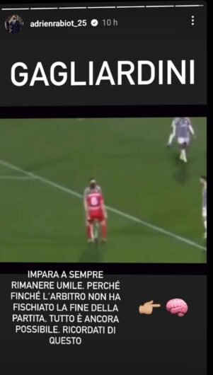 Al termine della partita, tramite una storia postata sul suo profilo Instagram ufficiale, il centrocampista francese ci ha tenuto a riprendere il collega, postando il video incriminato e scrivendo: “Impara sempre a rimanere umile. Perché finché l’arbitro non ha fischiato la fine della partita, tutto è ancora possibile. Ricordati di questo“.