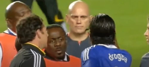 A mia memoria è in assoluto la partita in cui ho visto un calciatore più vicino al contatto fisico nei confronti di un arbitro. Contestualizziamo: semifinale di Champions League, la partita è tesissima. Al minuto 95′ Pique colpisce il pallone con la mano nella propria area, l’arbitro norvegese Ovrebo lascia correre e dopo qualche secondo fischia la fine. Il rigore negato, se segnato avrebbe regalato al Chelsea la finale. Dal fischio finale in poi succede di tutto. Drogba arriva faccia a faccia con il direttore di gara puntandogli il dito a mezzo centimetro dal volto. L’arbitro un po’ impaurito e un po’ per il senso di colpa gli presenta un cartellino giallo che avrebbe potuto e dovuto essere di un altro colore. Guadagnando il tunnel degli spogliatoi Drogba ci tiene ad evidenziare come “tutti hanno visto” davanti alle telecamere. Ma non è finita qui. Il centravanti della Costa d’Avorio raggiunge ancora l’arbitro all’ingresso del tunnel accompagnato dai compagni di squadra Terry e Ballack. Drogba sta per colpire con uno schiaffo l’arbitro ma viene fermato dai compagni che così probabilmente gli evitano una squalifica a vita.