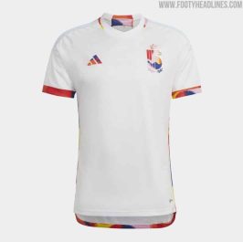 Decisamente diversa rispetto alla prima, ma altrettanto particolare, è anche la seconda maglia del Belgio, per la quale si è optato per il bianco come colore predominante. Per quanto riguarda le rifiniture, invece, Adidas ha griffato la divisa nella collezione “LOVE”, come inciso anche nella parte posteriore del colletto, creando una fantasia multicolore proprio sullo stesso colletto, nel largo rigo alla base delle maniche, sui fianchi e alla base della maglia, nonché nel logo della casa di produzione tedesca e nel simbolo della Nazionale belga, posti l’uno alla sinistra dell’altro. Il Belgio, pertanto, è pronto a sfoggiare due divise molto particolari e sempre originali e innovative che rispecchiano la tradizione e le caratteristiche della propria storia e della propria identità nazionale.