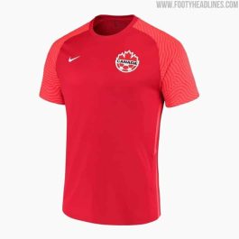Da sempre il colore predominante nelle prime divise del Canada è il rosso, che di anno in anno ha assunto diverse gradazioni, accompagnato dalle rifiniture prevalentemente in bianco, che richiamano quindi i colori della bandiera nazionale, e anche in nero. Quest’anno, come in quelli precedenti, non ci saranno eccezioni, con Nike che ha confezionato una maglia interamente rossa, cercando di rispettare la tradizione ma apportando anche le dovute variazioni per renderla differente rispetto a quelle precedenti. In particolare i dettagli più evidenti sono costituiti dalle maniche, che intrecciano il rosso scuro con uno di tonalità più chiara che va a creare una fantasia geometrica di righini che si intrecciano tra di loro. Il rosso più chiaro è anche il colore scelto per due righe che decorano i fianchi della divisa. A completamento c’è poi il logo dello sponsor tecnico, bianco, posto alla sinistra del simbolo della Nazionale nordamericana.