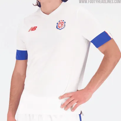 Molto simile alla prima anche la seconda maglia della Costa Rica, per la quale si è optato per il bianco come colore predominante. Anche in questo caso il logo New Balance, stavolta di colore rosso, è posto alla sinistra del simbolo della Nazionale centro-americana, che così come per la prima maglia non abbandona i colori originali. Rispetto alla prima divisa, poi, il colletto rimane dello stesso colore della maglia, quindi bianco, così come la base delle maniche resta blu col righino bianco e rosso nel mezzo, sulla parte esterna. Inoltre i pantaloncini, in questo caso, saranno bianchi con due righe blu sui fianchi. La Costa Rica, perciò, è pronto a sfoggiare due divise semplici ma sempre originali e che rispecchino la tradizione e le caratteristiche della propria storia.
