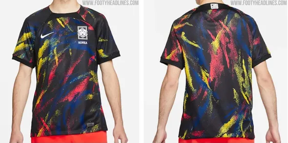 Molto particolare e interessante è invece la seconda maglia della Corea del Sud, per la quale si è optato per il nero come colore predominante. In questo caso sia il logo Nike che il simbolo della selezione asiatica sono di colore bianco e collocati nella stessa disposizione della prima maglia. La vera particolarità è rappresentata dalla fantasia ideata dalla casa di produzione statunitense, che ha optato per una serie di strisce astratta e variopinta, con i colori blu, giallo, arancione e fuxia cosparse per tutta la divisa in maniera assolutamente originale. A completamento il pantaloncino che dovrebbe avere la stessa tinta della prima maglia. La Corea del Sud, pertanto, è pronto a sfoggiare due divise che rappresentano un mix di classico e innovativo che però riesce a rispecchiare la tradizione e le caratteristiche della propria storia.