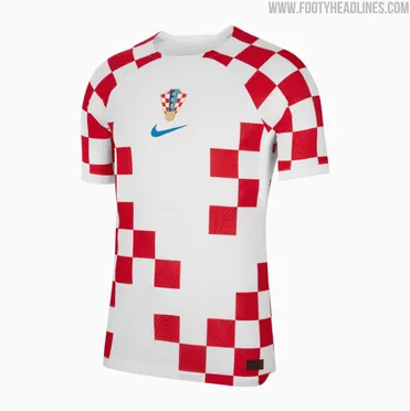 Le prime divise della Croazia sono sempre state contraddistinte dalla fantasia a scacchi con quadri bianchi e rossi, in conformità a quelli che sono i colori della bandiera nazionale, accompagnata dalle rifiniture di colore blu. Pertanto anche per la rassegna mondiale di Qatar la tradizione dovrebbe essere confermata, con le dovute variazioni rispetto al passato. In particolare Footy Headlines ha rivelato in anteprima la nuova maglia, simile a quelle precedenti ma con l'unica variazione costituita dalla predominanza del bianco sulla parte frontale, formando una sorta di S e fino ad arrivare al petto. Una scelta originale e particolare da parte della Nike, che si discosta dal lavoro fatto con Brasile, Inghilterra, Olanda e Australia e che invece si avvicina ai temi adottati da Portogallo, Qatar, Francia e Stati Uniti. Il logo dello sponsor tecnico, di colore blu così come i numeri presenti sia sulle maglie che sui pantaloncini, e il simbolo della Nazionale croata, sono invece posti l'uno sotto l'altro, al centro del petto.