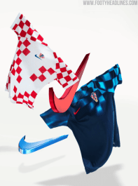 Le prime divise della Croazia sono sempre state contraddistinte dalla fantasia a scacchi con quadri bianchi e rossi, in conformità a quelli che sono i colori della bandiera nazionale, accompagnata dalle rifiniture di colore blu. Pertanto anche per la rassegna mondiale di Qatar la tradizione dovrebbe essere confermata, con le dovute variazioni rispetto al passato. In particolare Footy Headlines ha rivelato in anteprima la nuova maglia, simile a quelle precedenti ma con l’unica variazione costituita dalla predominanza del bianco sulla parte frontale, formando una sorta di S e fino ad arrivare al petto. Una scelta originale e particolare da parte della Nike, che si discosta dal lavoro fatto con Brasile, Inghilterra, Olanda e Australia e che invece si avvicina ai temi adottati da Portogallo, Qatar, Francia e Stati Uniti. Il logo dello sponsor tecnico, di colore blu così come i numeri presenti sia sulle maglie che sui pantaloncini, e il simbolo della Nazionale croata, sono invece posti l’uno sotto l’altro, al centro del petto.