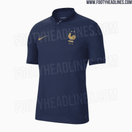 Da sempre il colore predominante nelle prime divise della Francia, come dice anche il soprannome dei transalpini, è il blu, che di anno in anno ha assunto diverse gradazioni, accompagnato dalle rifiniture di colore rosso, bianco e dorato. Pertanto anche per la rassegna mondiale di Qatar la tradizione dovrebbe essere confermata, con le dovute variazioni rispetto al passato. In particolare Footy Headlines ha rivelato in anteprima la nuova maglia, a tinta unita col colore succitato e una fantasia geometrica di linee intrecciate posta sulle maniche. Una scelta, da parte della Nike, che si discosta dal lavoro fatto con Brasile, Inghilterra, Olanda e Australia e che invece si avvicina di più ai temi adottati da Portogallo e Qatar. Molto particolare anche la scelta del colletto, a girocollo, con una fantasia diversa da quella delle maniche e con un piccolo bottone a chiusura. Il logo dello sponsor tecnico e il simbolo della Nazionale francese con le due stelline sopra, entrambi dorati, sono invece posti l’uno alla sinistra dell’altro e si invertono, invece, sui pantaloncini interamente bianchi, con i calzettoni rossi a tinta unita attraversati frontalmente dal logo Nike a completamento della divisa.