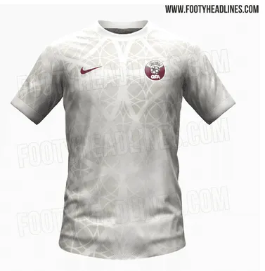 Molto interessante la probabile seconda maglia del Qatar, per la quale si è optato per il bianco come colore predominante, mantenendo sempre il modello 2022 delle divise prodotte dal marchio statunitense. In questo caso, tuttavia, è stata ideata una fantasia che richiama il disegno presente sul simbolo della selezione asiatica, visibile in contrasto con delle macchie color sabbia. Girocollo semplice nel colletto così come per la prima divisa, la seconda maglia avrà l'unica rifinitura granata nel logo Nike, che sarà posto alla sinistra del simbolo del Qatar così come come nella maggior parte delle altre Nazionali vestite dalla casa di produzione d'oltreoceano. Così come le altre contendenti, quindi, anche il Qatar è pronto a sfoggiare due divise sempre diverse ma che rispecchino la tradizione e le caratteristiche della propria storia, e avrà una particolare importanza proprio perché sarà la prima sfoggiata in una rassegna Mondiale.