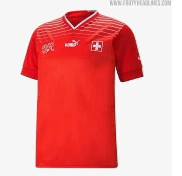 Da sempre il colore predominante nelle prime divise della Svizzera è il rosso, che di anno in anno ha assunto diverse gradazioni, accompagnato dalle rifiniture in bianco, che richiamano quindi i colori della bandiera nazionale. Anche quest'anno non ci saranno eccezioni, con Puma che ha cercato di rispettare la tradizione apportando le dovute variazioni, per rendere la maglia differente rispetto a quelle precedenti. In particolare la casa di produzione tedesca ha confezionato una maglia interamente rossa con la base delle maniche più stretta ed elastica. Oltre al colletto a V con due righini banco e rosso, l'unica variazione è costituita da una serie di altri righini bianchi che partono dalle spalle e si dissolvono sul petto, in corrispondenza del logo dello stesso sponsor tecnico, posto al centro e anch'esso di colore bianco tra il simbolo e la bandiera della Nazionale svizzera.