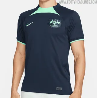 Molto interessante, anche se più lineare, la probabile seconda maglia dell'Australia, per la quale si è optato per il blu come colore predominante. In questo caso la Nike ha fatto ricorso al modello utilizzato dalla maggior parte dei club che veste, inserendo quindi delle rifiniture color turchese alla base delle maniche e sul petto. Una tinta, quest'ultima, che caratterizza anche il logo dello sponsor tecnico e il simbolo dell'Australia. Così come le altre contendenti anche gli oceanici sono pronti a sfoggiare due divise sempre diverse ma che rispecchino la tradizione e le caratteristiche della propria storia.