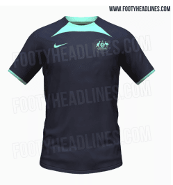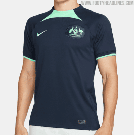 Molto interessante, anche se più lineare, la probabile seconda maglia dell’Australia, per la quale si è optato per il blu come colore predominante. In questo caso la Nike ha fatto ricorso al modello utilizzato dalla maggior parte dei club che veste, inserendo quindi delle rifiniture color turchese alla base delle maniche e sul petto. Una tinta, quest’ultima, che caratterizza anche il logo dello sponsor tecnico e il simbolo dell’Australia. Così come le altre contendenti anche gli oceanici sono pronti a sfoggiare due divise sempre diverse ma che rispecchino la tradizione e le caratteristiche della propria storia.