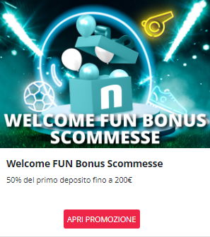 Per chi è appassionato di scommesse sportive la promozione descritta in precedenza non è di certo l’unica a cui Novibet ha pensato. Su questa categoria è infatti presente un welcome FUN bonus scommesse tramite cui si può raggiungere fino a 200€ in omaggio attraverso un bonus del 50% sulla prima ricarica effettuata da un nuovo utente. Al momento del piazzamento di una nuova scommessa si potrà dunque scegliere se utilizzare questo fun bonus oppure i soldi reali. Questo fun bonus però deve essere giocato almeno 5 volte per poter essere convertito in real bonus. Le scommesse che sono calcolate ai fini del bonus sono solo quelle con quota singola non inferiore a 2.00, sono inoltre valide solo le scommesse multiple con un minimo di tre eventi. Il bonus vale fino a 10 giorni dopo il suo accredito.