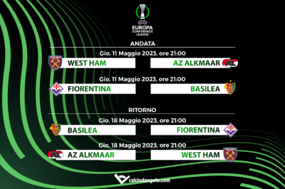 Come accade anche per la Champions League e per l’Europa League, anche in Conference League saranno due le semifinali che le squadre dovranno giocare per tentare di raggiungere una qualificazione per la finale. Gli incontri di andata si giocheranno giovedì 11 maggio alle 21:00 e vedranno la Fiorentina ospitare il Basilea e il West Ham accogliere l’AZ Alkmaar. Successivamente, il ritorno vedrà protagoniste le squadre giovedì 18 maggio, ancora alle 21:00. La finale è prevista invece per il 7 giugno all’Eden Arena di Praga.