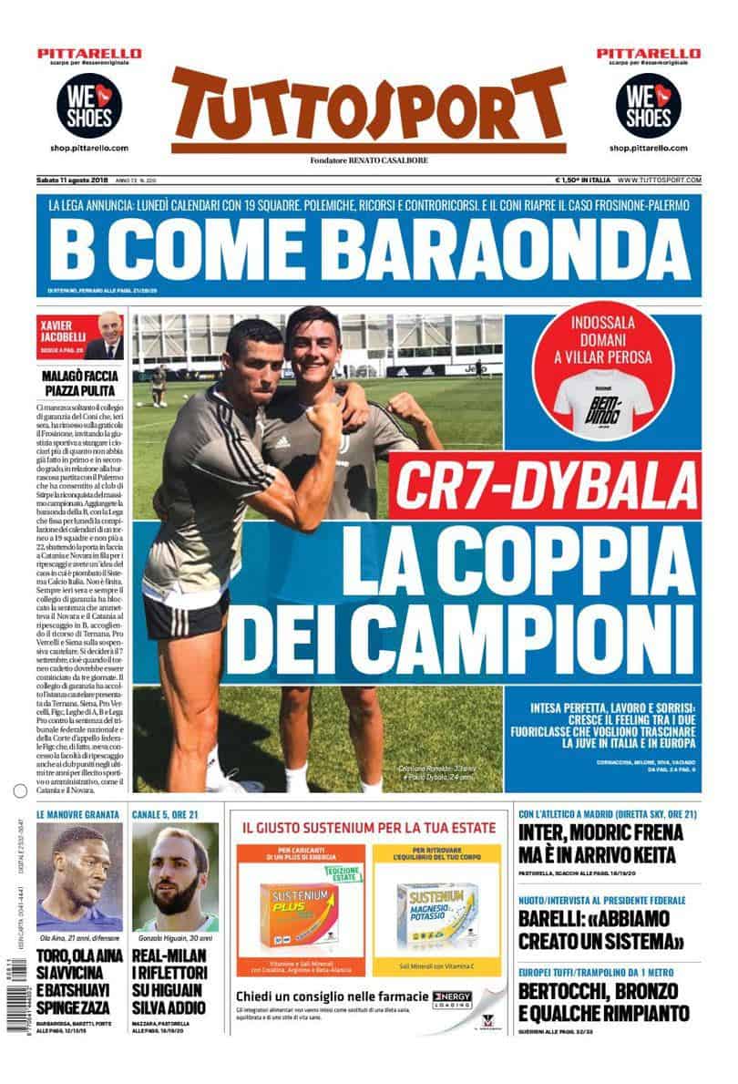 Con l’avvicinarsi dell’inizio della Serie A, i tifosi bianconeri non vedono l’ora di godersi le prestazioni della coppia Dybala-Ronaldo. I due alla Continassa stanno migliorando la loro intesa e sono pronti a far grande la Vecchia Signora anche in Europa. Caos in Serie B, con la negazione dei ripescaggi e l’inizio del campionato che sarà a 19 squadre, invece che a 22. Si prevedono, comunque, i ricorsi delle squadre escluse dai ripescaggi. Lunedì i calendari. Tornando al mercato, il Torino sta provando a chiudere per il terzino Ola Aina e per Zaza.
