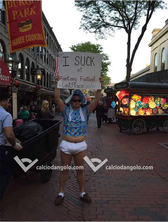 Il malcapitato fantallenatore della Major League Soccer statunitense è stato costretto a girare per le strade in “abbigliamento” da neonato e con un cartello laconico: “Faccio schifo al fantacalcio“. Non manca un hashtag altrettanto eloquente: #LastPlastPunishment, penitenza per l'ultimo posto.